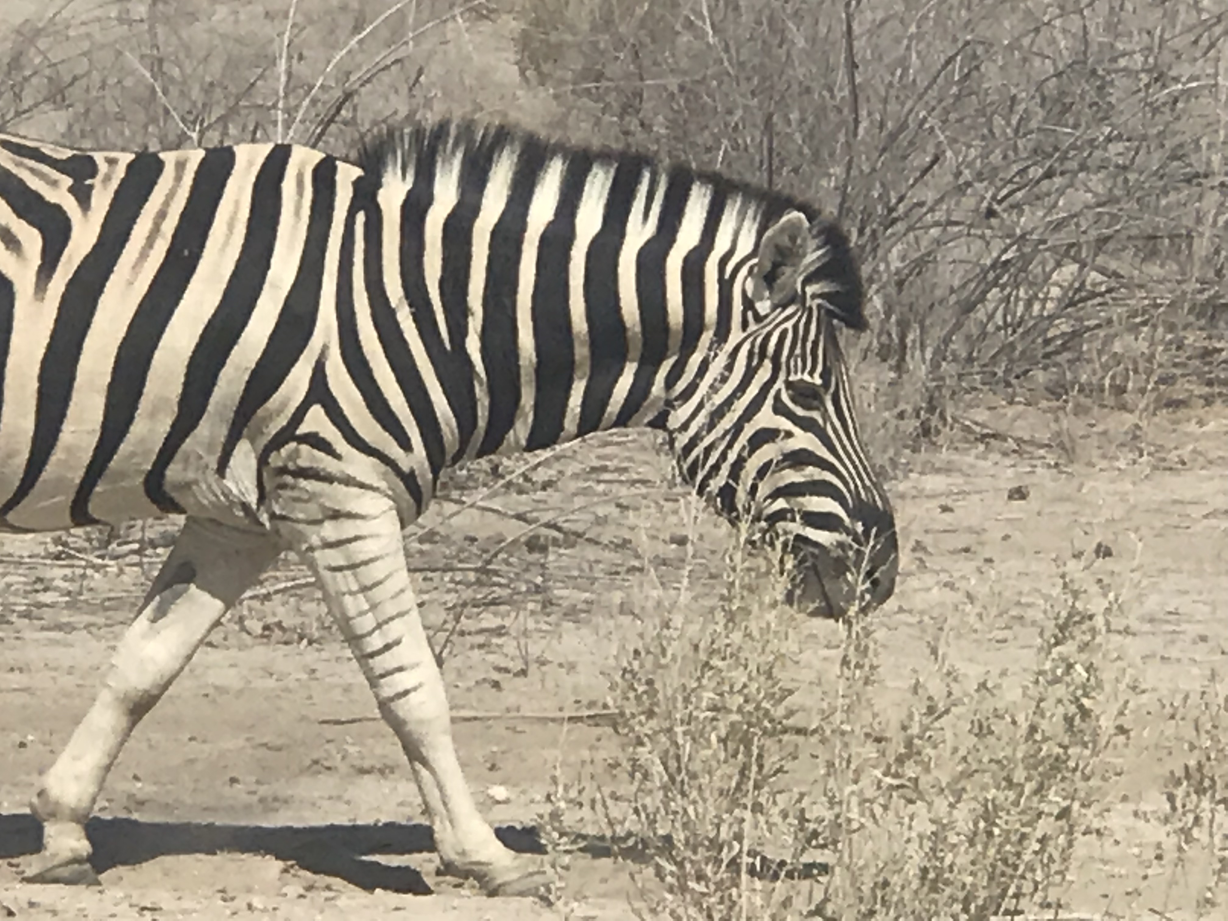 Und wieder ins Auto und zu den nächsten Wasserlöchern bis zu Halali, unserem nächsten Campingplatz, sind es noch weitere 90 km. Am Nachmittag wird es im Auto doch echt warm. Auf dem Weg sahen wir wieder viele Springböcke, heartbeast, Zebras, Giraffen etc.