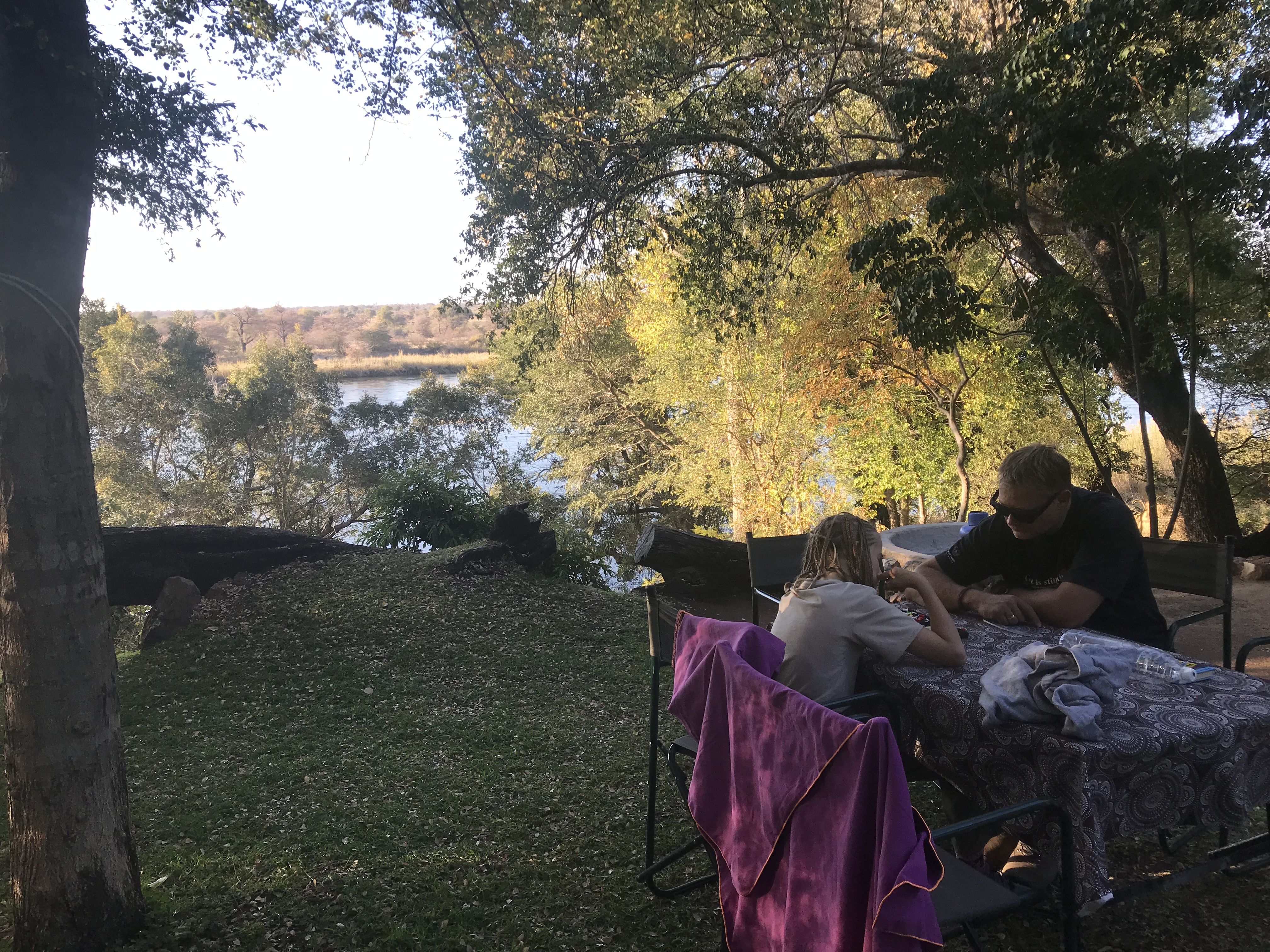 Glücklich und müde von der Fahrt, kommen wir in unserer superschönen Lodge an. Endlich mal wieder echte Betten. Die Kinder haben eine Suite mit freistehender Badewanne, toll. Wir freuen uns auf das Abendessen. Fisch aus dem Fluß für mich und die anderen nehmen Beef 🥩 und Frank Elandantilope. Alles ist sehr lecker und wir genießen den Abend. ![]()
