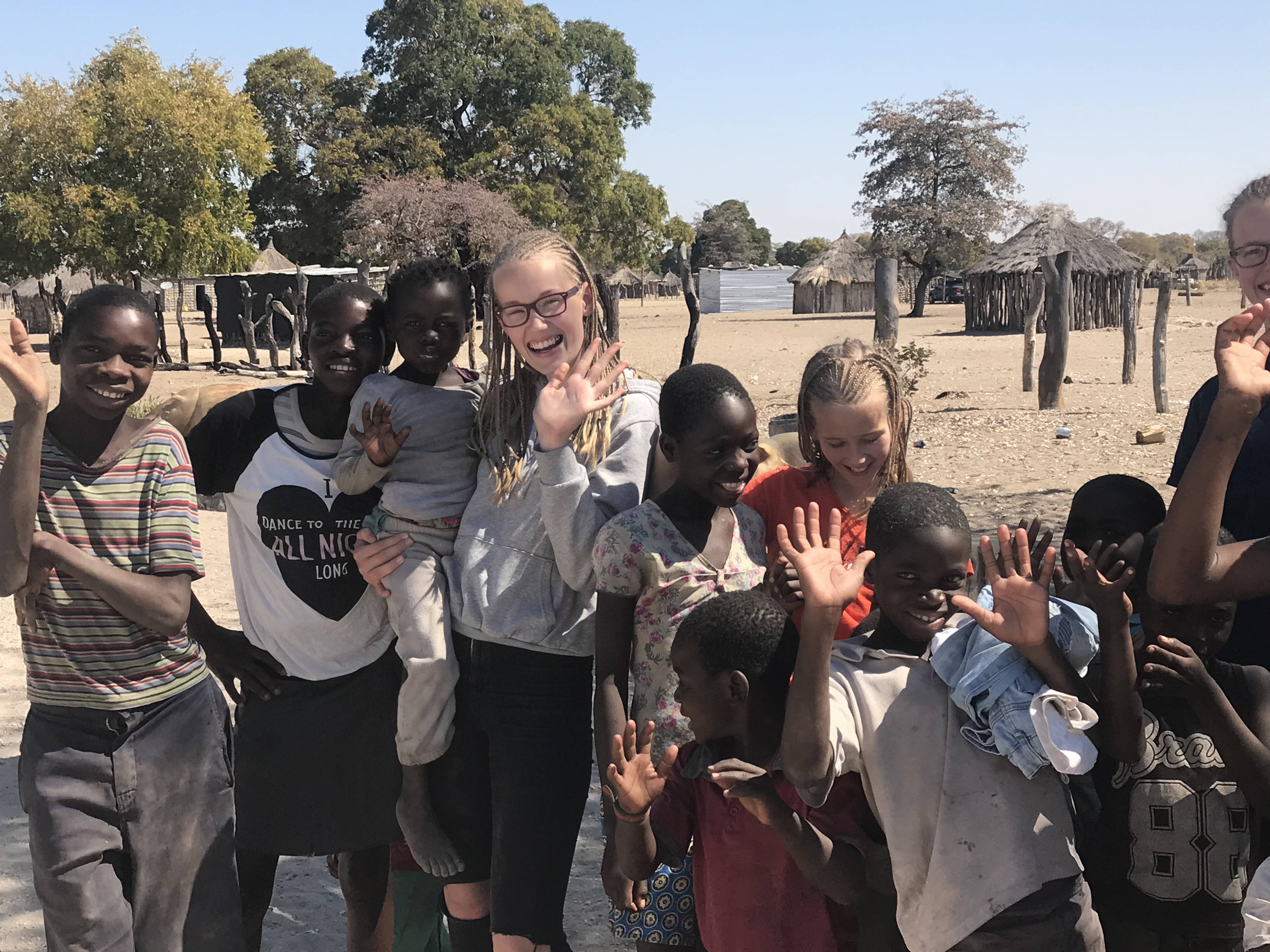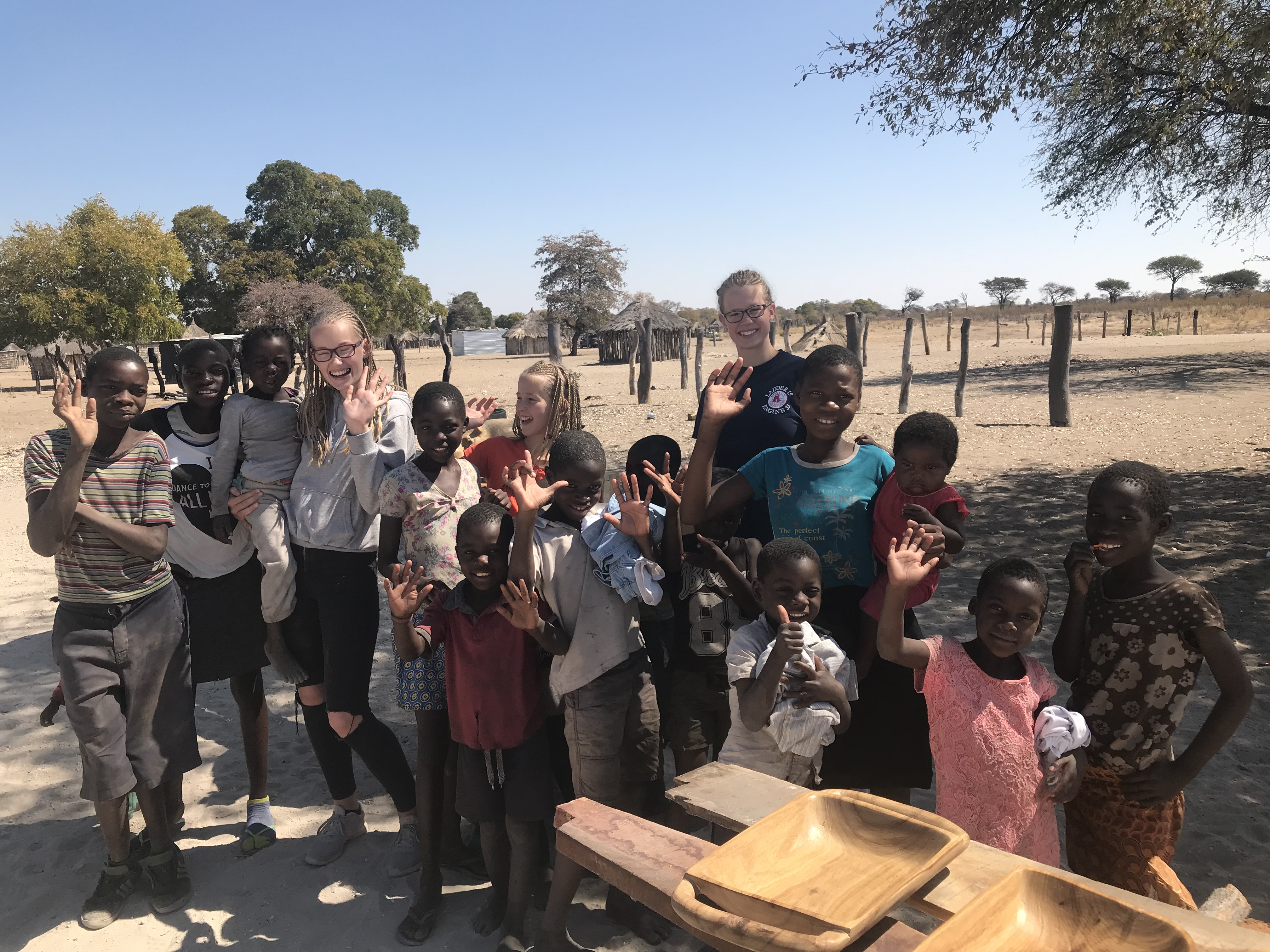 Die Mädchen haben die Kleidung, die sie verschenken wollen zurecht gelegt, denn am Tag vorher waren wir nicht gut vorbereitet. Ein kleiner, vielleicht vierjähriger Junge stellte sich mitten auf die Straße, sein sechsjähriger Bruder daneben und versuchte uns anzuhalten. Es war die Zufahrt zur Nundalodge, also eine sehr sandige Straße, wir fuhren eh langsam. Wir verschenkten unsere Salbeibonbons und Stifte, Kleidung war im Kofferraum. Das tat den Mädchen sehr leid, denn die Kinder waren so süß.